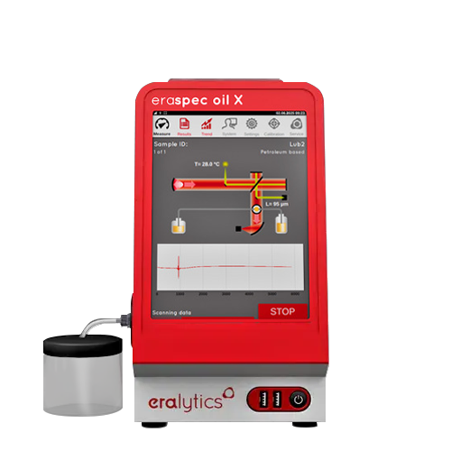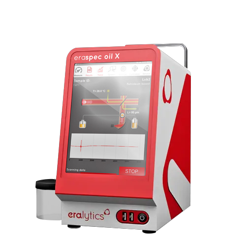 The eraspec oil X is the world’s smallest lab-grade FTIR lube oil analyzer. At the push of a button eraspec oil X delivers a detailed fingerprint of lubricating oils using only 2 mL of sample. Thanks to its rugged and lightweight design, eraspec oil X is the perfect tool for ultra-fast measurements in laboratories, inside mobile labs or even directly in the field. All this is available with outstanding measurement accuracy.